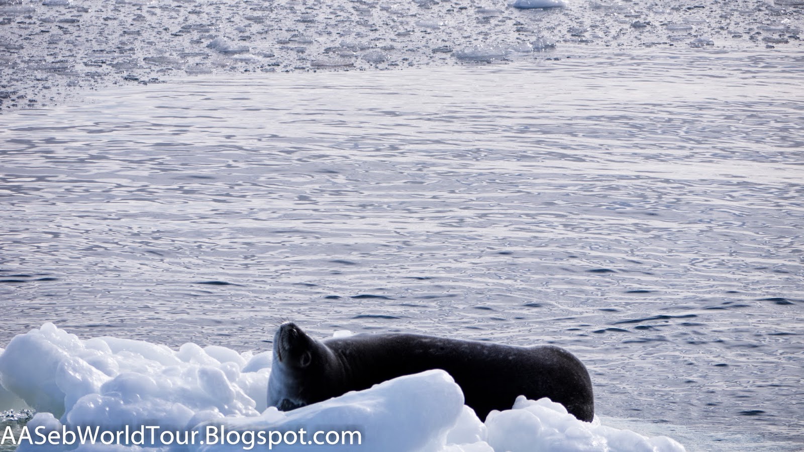 Shortly after, while enjoying the magnificent views of the Antarctic continent, glaciers and icebergs, we saw a lone seal on his little piece of ice. We drove around him, getting very nice close up pictures. He seemed curious but not enough to actually move anything more than his head.